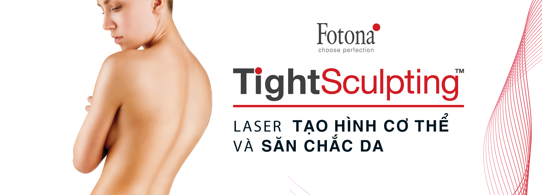 Fotona TightSculpting® là phương pháp điều trị laser không xâm lấn, bước sóng kép độc đáo để điêu khắc và làm săn chắc da trên tất cả các vùng cơ thể. Các chế độ xung độc quyền được sử dụng phối hợp để phá hủy tế bào mỡ bởi nhiệt độ cao và tái tạo collagen cho ra kết quả vượt trội. Thủ thuật này là một giải pháp không xâm lấn, an toàn và hiệu quả thay thế cho việc hút mỡ mà không tốn vật tư tiêu hao, bệnh nhân của bạn không cần thời gian nghỉ dưỡng.